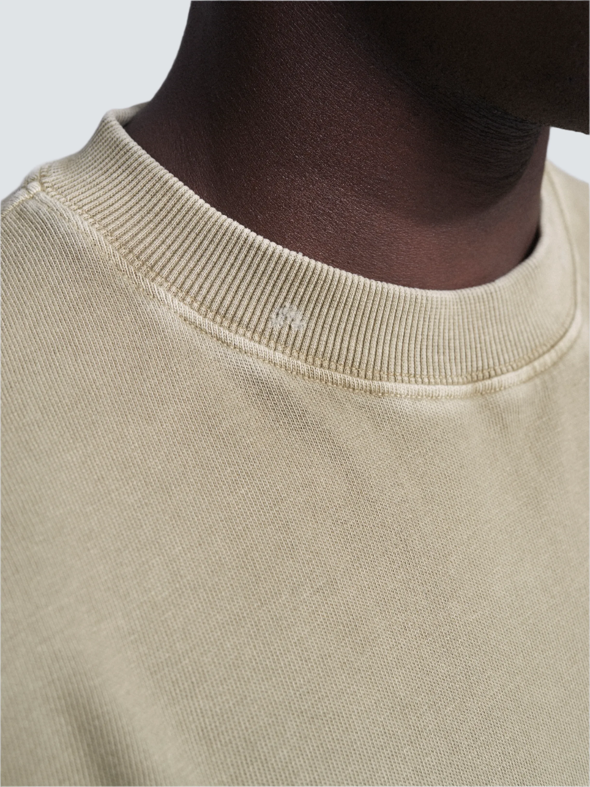 - Ribbed crewneck with distressed details