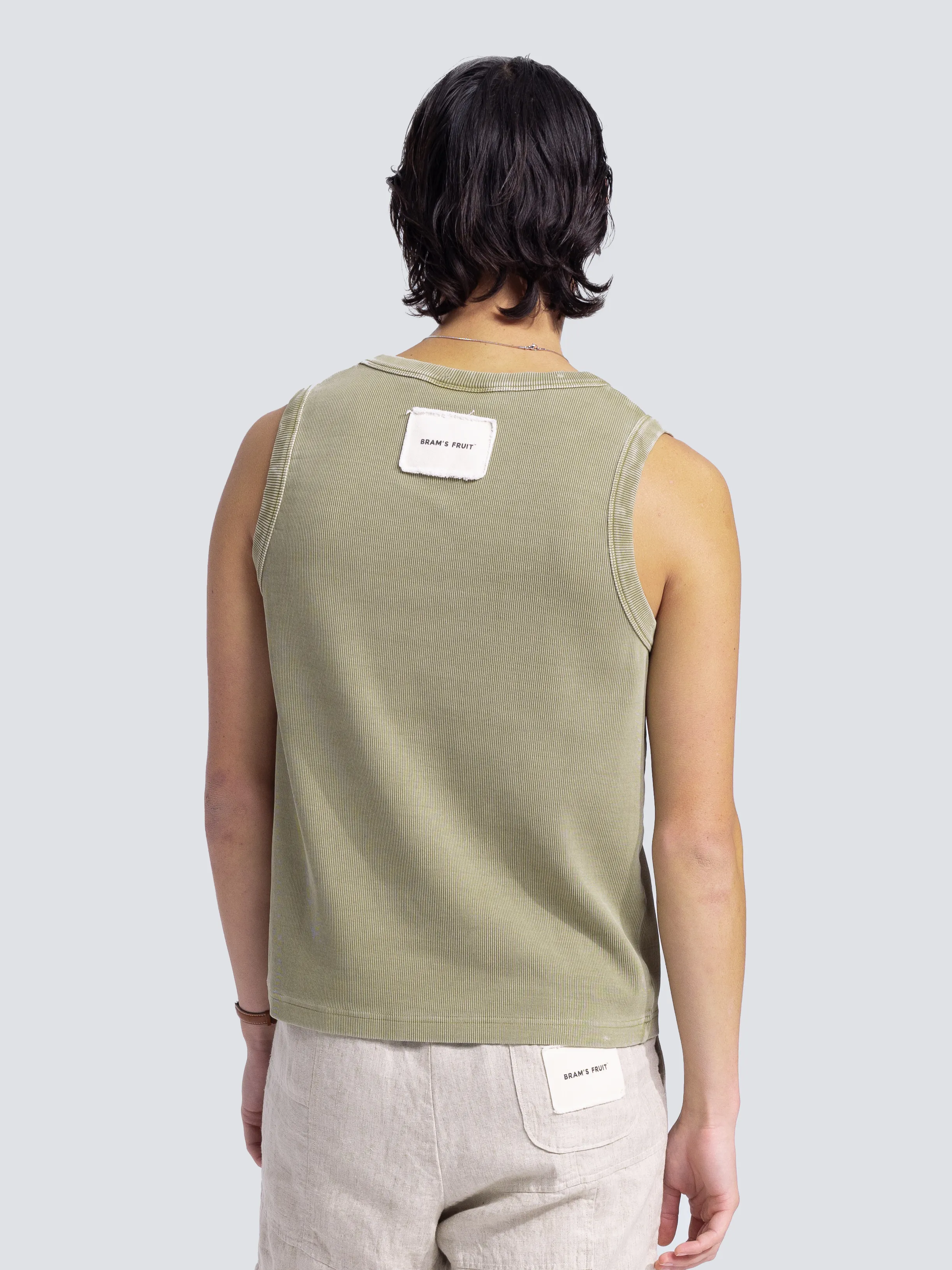 -70%Heavy Rib Tanktop Distressed - Washed Olive Greenā